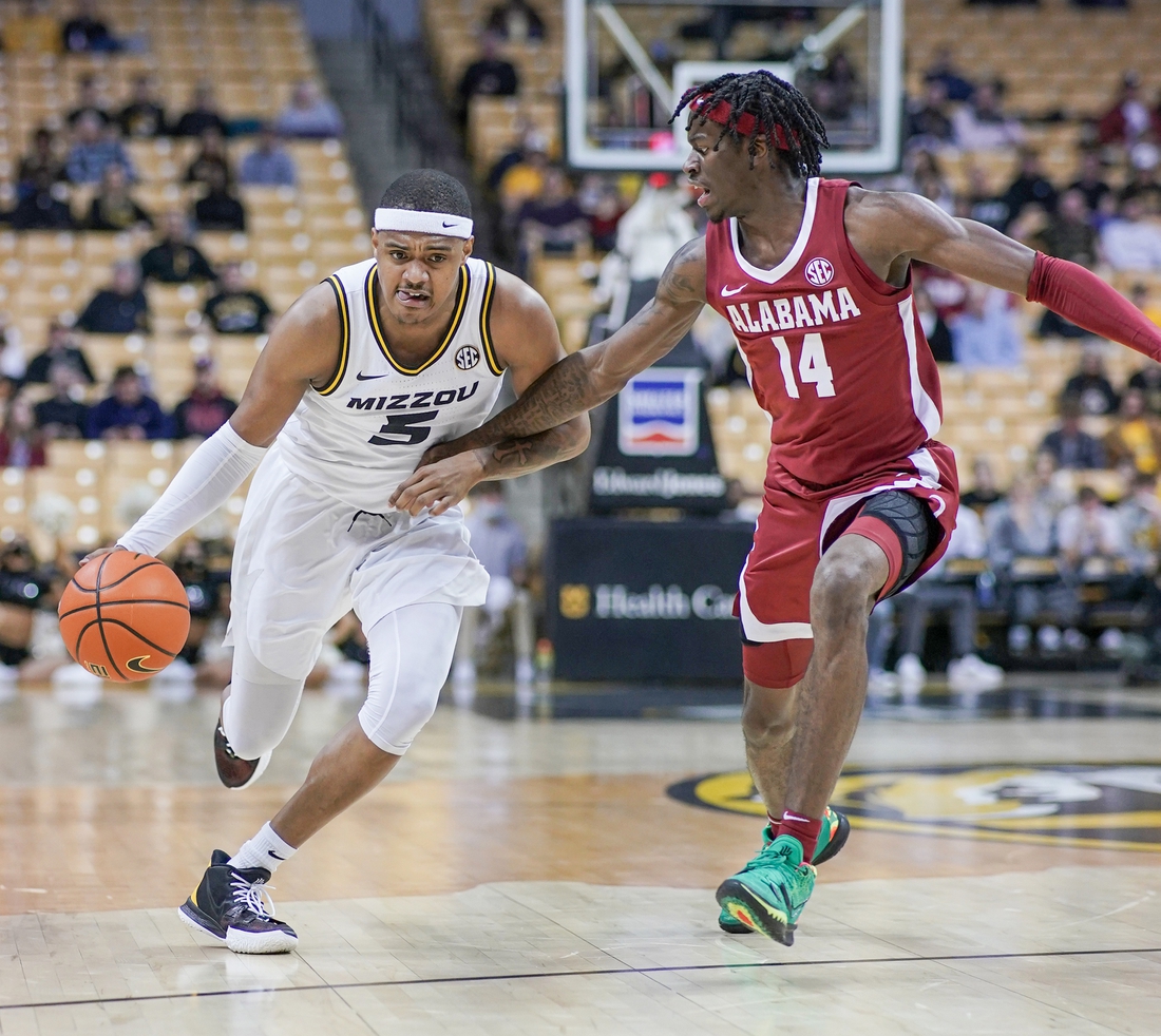 Missouri responded with an 8-0 surge to take a 19-14 lead, with Pickett scoring twice in the lane. The Crimson Tide answered with a 15-5 surge triggered by JD Davison’s consecutive 3-pointers to move ahead 29-24.