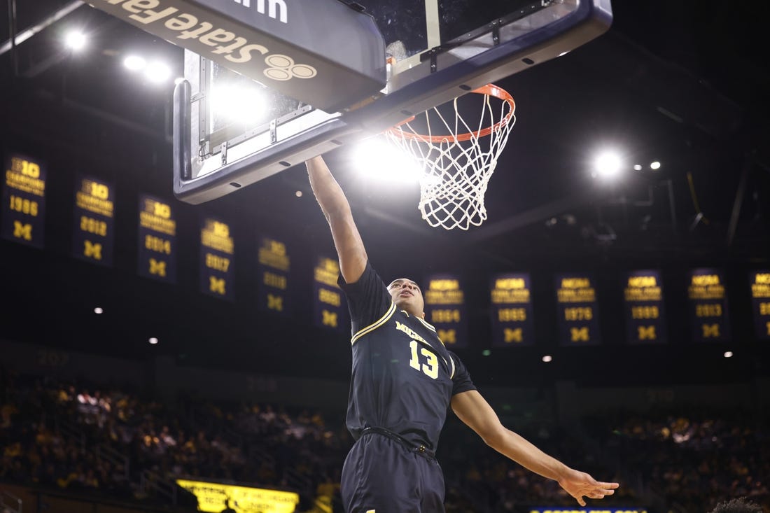 Lipscomb had a brief surge, cutting Michigan’s lead to seven at 41-34 with 2:48 to go in the first half before the Wolverines took a 49-41 lead at halftime.