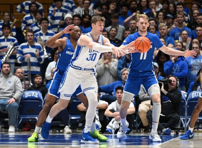 Duke responded by making its final five field-goal attempts of the first half, which the Blue Devils ended on a 12-2 run. Caleb Foster’s 3-pointer with 34 seconds left gave the hosts a 44-39 lead heading into the locker room.