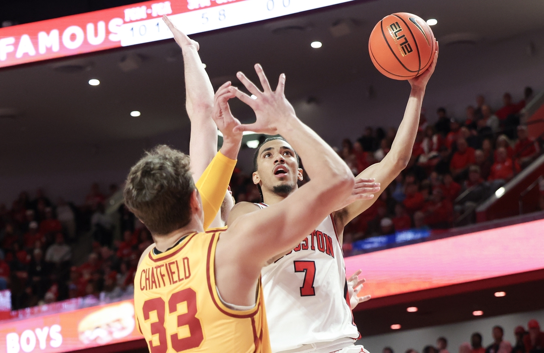 Iowa State nearly fought all the way back with an 18-3 run in the second half, trimming Houston’s lead to 48-47 on Heise’s 3-pointer with 8:10 remaining. Houston immediately threatened to pull away with a prompt 5-0 but the Cyclones responded again, cutting the lead to 58-56 on a pair of Momcilovic free throws with 5:24 remaining.