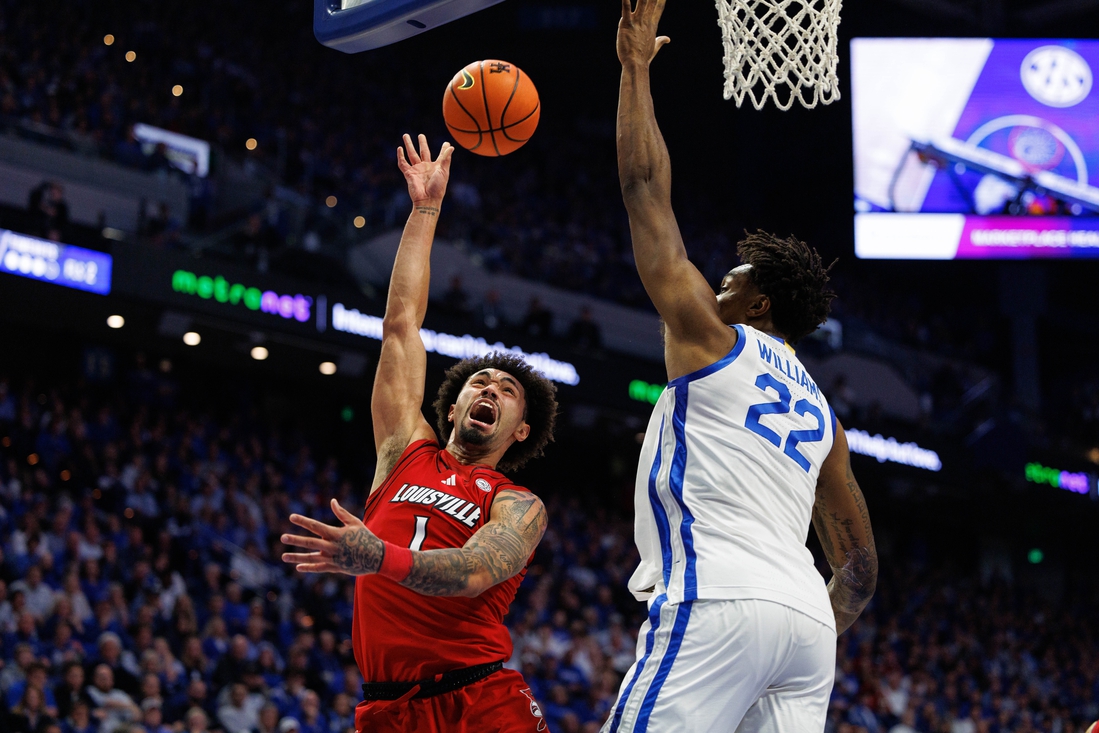Kentucky started hot, making its first five shots, and stayed that way throughout the first half. The Wildcats connected on 12 of their first 15 and led by as much as 28-16 less than nine minutes into the game. Despite the hosts shooting 69.6 percent in the first half compared to its 41.7 percent, Louisville managed to battle back to get within four points three times.