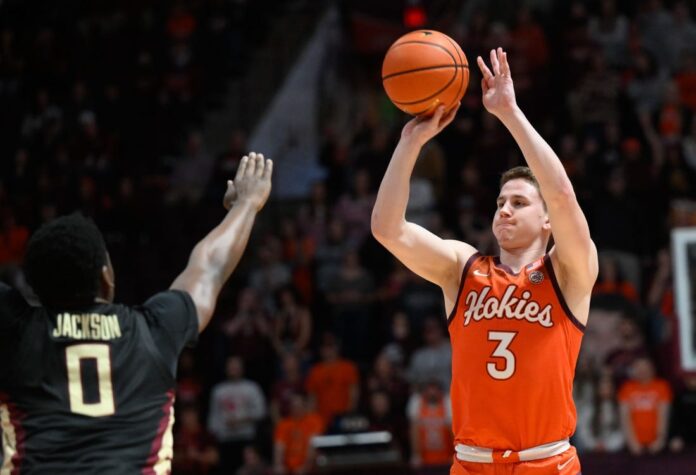 Each team drilled six triples in the opening half, which hinged on Virginia Tech’s greater success drawing contact near the rim. The Hokies went 9-of-9 from the foul line compared to Wofford’s 1-of-1 mark and led 43-33 at halftime.