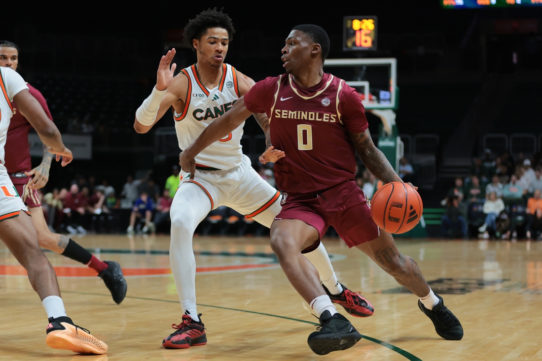 Miami got off to a fast start, taking a 5-0 lead. However, late in the half, Florida State’s press started forcing turnovers, fueling a 17-3 run. Miami had six giveaways during that span.