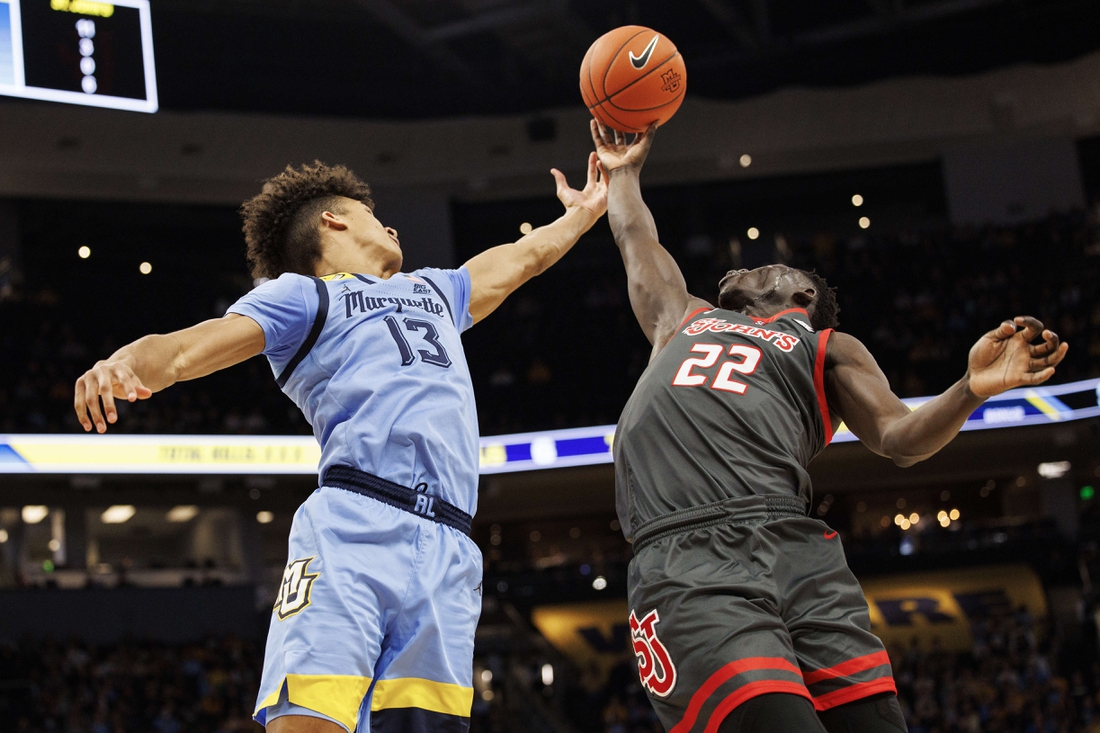 After allowing the game’s first 10 points, Addae-Wusu’s 3-pointer gave St. John’s its first lead at 19-18 with 9:57 remaining but Marquette quickly surged ahead. A layup by Kuath started an 11-0 run on the next possession and Lewis scored nine straight points with his dunk putting Marquette up 29-19 with 7:14 remaining.
