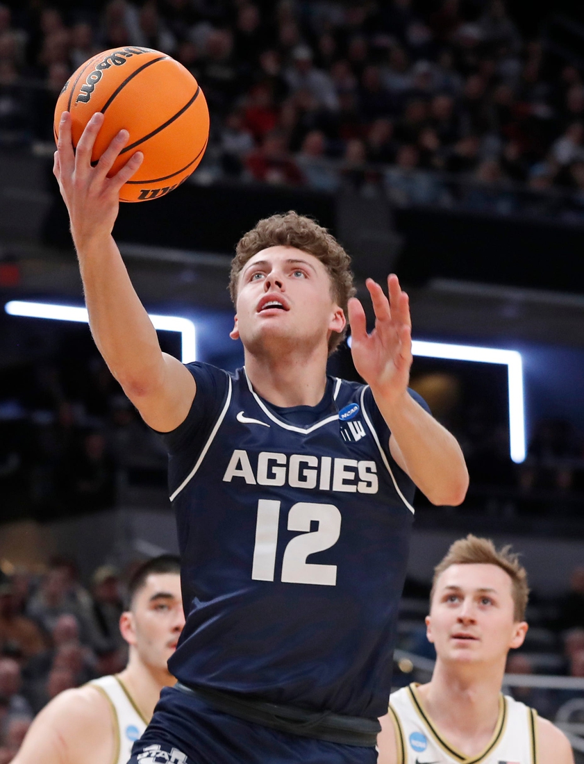Martinez responded by driving the baseline and dunking over 6-foot-8 freshman Cooper Koch. That triggered a crucial 9-0 Aggies run as Martinez sandwiched a 20-footer and a 3-pointer around two Falslev free throws to give Utah State a 58-53 lead with 10 minutes to play.
