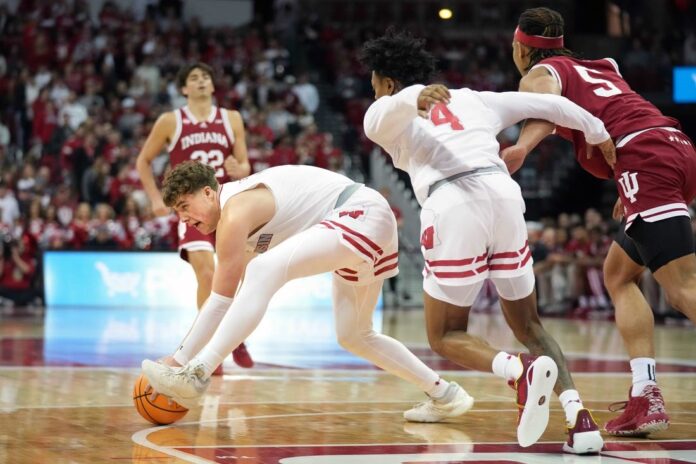 Indiana answered with a 9-0 run, pulling within 49-42 on a steal and breakaway dunk by Payton Sparks. Klesmit then scored Wisconsin’s next 12 points over a span of 1:26 to put the Badgers in front 61-44.