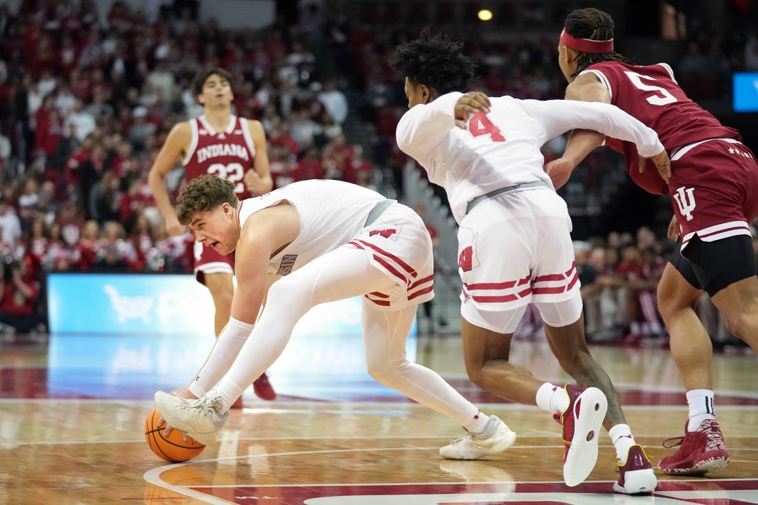 Carter Gilmore scored underneath to cap the 18-2 run that put Wisconsin up 67-44 with 12:07 left. The Hoosiers got within 79-68 on a three-point play by Mgbako with just under 4 1/2 minutes remaining.