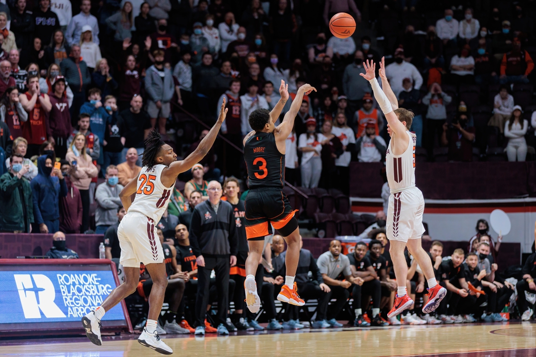 The Hokies shot just 40.0 percent from the floor, but they stayed in the game in two ways. They shot 7-for-16 on three-pointers, and they outrebounded Miami 18-10, including 6-1 on the offensive boards.