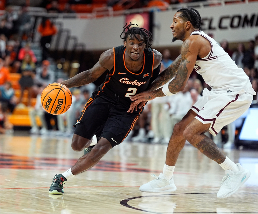 Up front, Oklahoma State starts 6-foot-10, 245-pound Abou Ousmane and 6-7, 230-pound Robert Jennings II. Jennings amassed 14 points and 11 rebounds against Florida Atlantic, while Khalil Brantley scored a team-high 16 points.