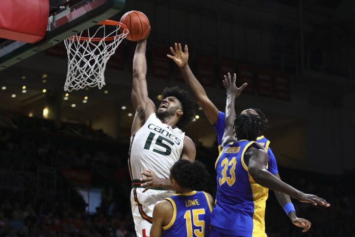 Miami is powered by Norchad Omier, who is tops on the team in scoring (18.1) and rebounds (9.8).