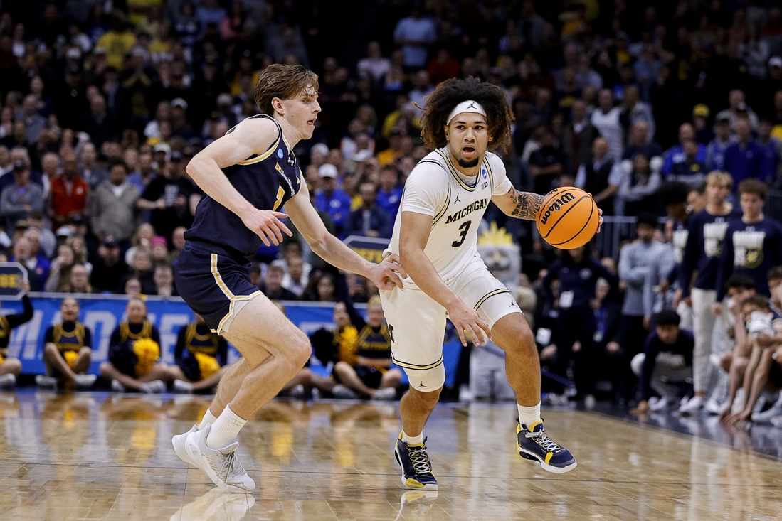 DENVER – Tre Donaldson hit a go-ahead 3-pointer with 2:13 left, and fifth-seeded Michigan weathered a second-half comeback by No. 12 UC San Diego to beat the Tritons 68-65 in the South Region first round of the NCAA Tournament on Thursday night.