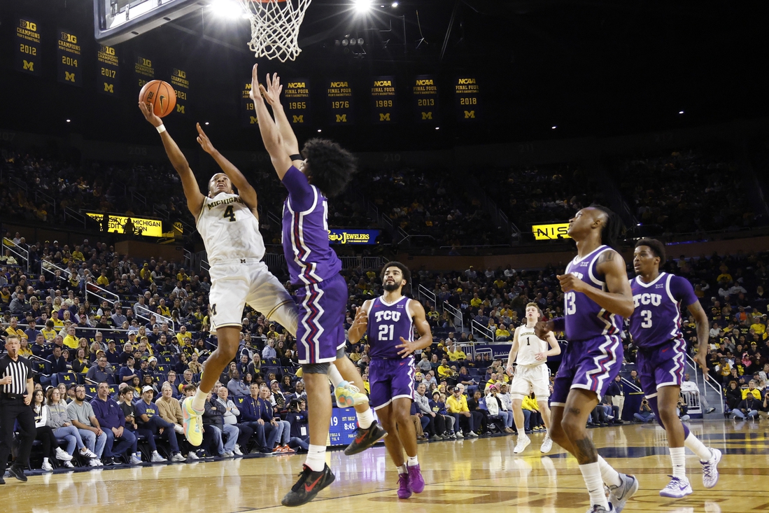 Nimari Burnett scored 16 points to lead four Michigan players in double figures as the Wolverines defeated TCU 76-64 on Friday in Ann Arbor, Mich.