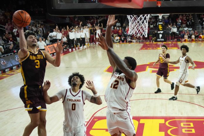 Minnesota’s ability to generate takeaways fueled a 15-2 advantage in points off turnovers, which was critical for the Golden Gophers’ comeback. They trailed behind an initial barrage from long range for the host Trojans, who shot 9 of 15 (60 percent) from behind the arc for the game.
