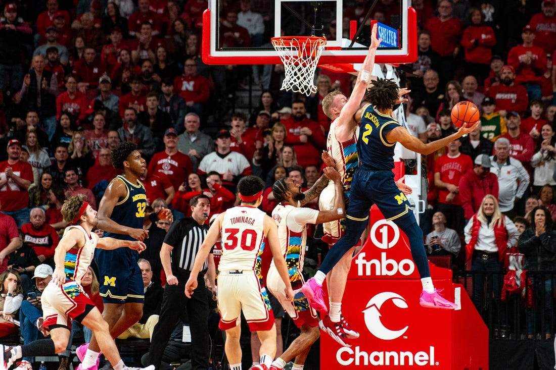 The Wolverines then went on a 9-2 run to pull within 57-38 with 13:08 left, but Nebraska pushed its lead to 25 at 68-43 with 9:04 remaining following a pair of baskets from Williams.