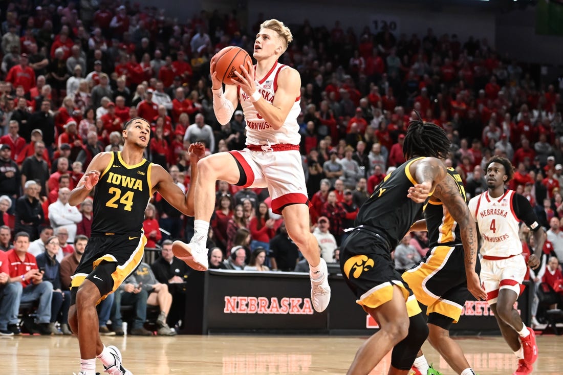 Iowa, the top-scoring team in the Big Ten at 83.8 points per game, started 3 of 28 from the field with 16 consecutive misses during a 20-0 Nebraska run and trailed 29-8 with 5:48 left in the first half. The drought ended on a 3-pointer by Kris Murray, who had missed the previous four games with a foot injury.