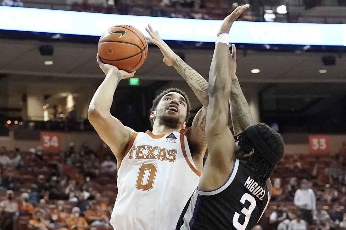 Timmy Allen scored 15 points for Texas (13-5, 3-3), which was 1 of 8 from the floor in the closing minutes and dropped its second straight contest. The Longhorns are now 11-1 at home this season.