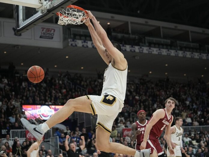 Purdue won the Maui Invitational with wins over Gonzaga, Tennessee and Marquette, and is coming off a neutral-court victory over Alabama in which Braden Smith scored 27 points to support Edey’s 35. The combined 62 points were the most for a Purdue duo since Glenn Robinson (44) and Cuonzo Martin (29) in a 1994 NCAA Tournament game.
