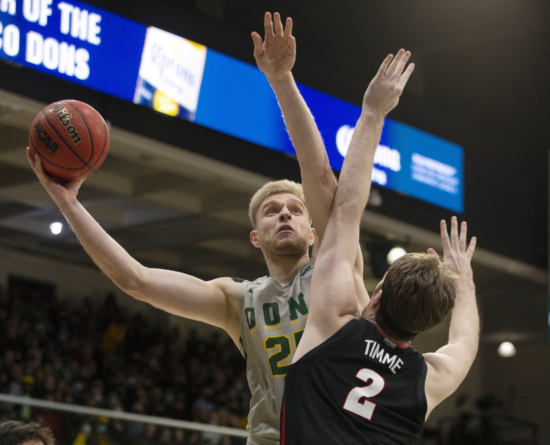 The Dons pulled to within 10 with 2:52 left on a 3-pointer by Julian Rishwain. But Gonzaga answered with a pair of Andrew Nembhard free throws and a layup by Drew Timme to stem the tide.