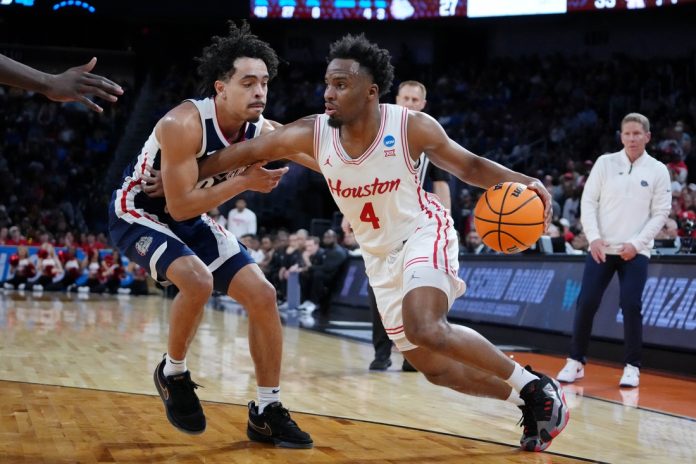 The Cougars’ Ja’Vier Francis blocked the 3-point shot of the Bulldogs’ Khalif Battle with under three seconds left and Houston leading by three. Milos Uzan then sank two free throws with 2.1 seconds left to seal the victory.