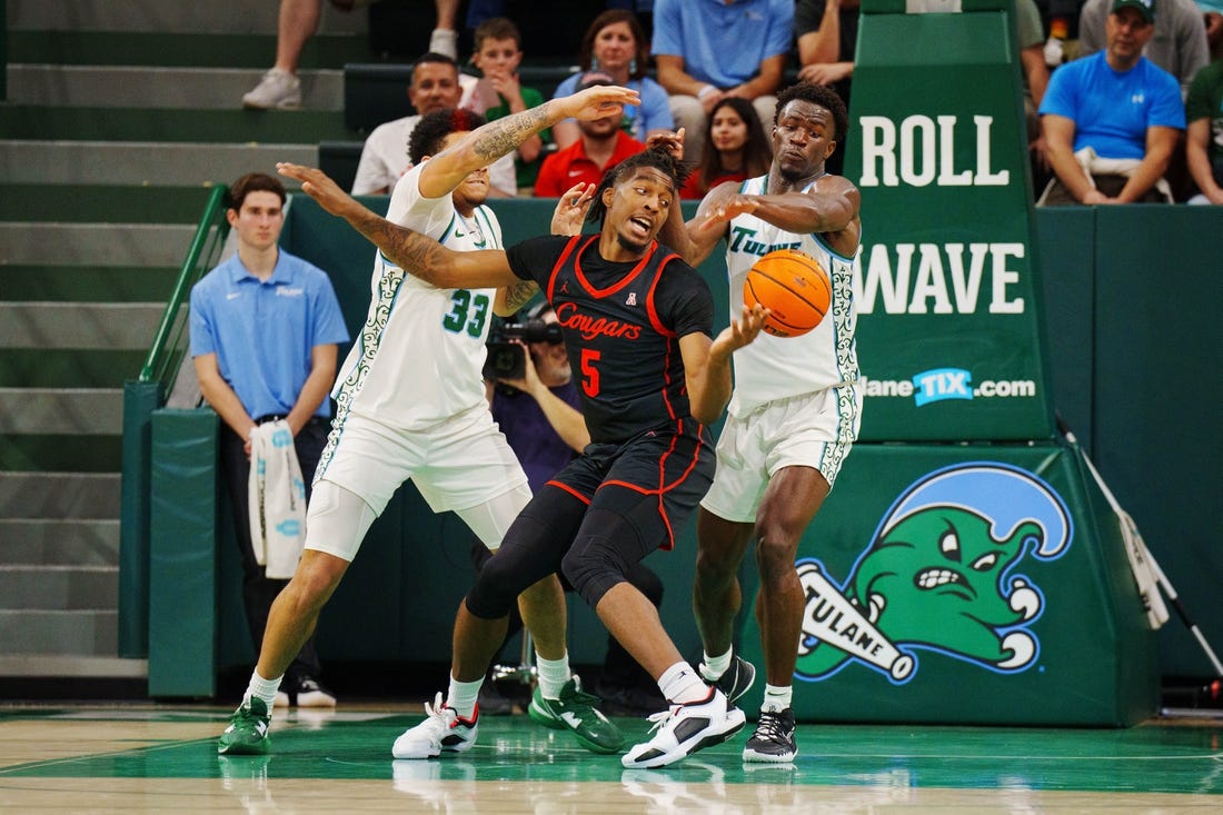 Collin Holloway scored the Green Wave’s next three points, but the Cougars expanded the lead to 33-20 on a dunk by Ja’vier Francis.