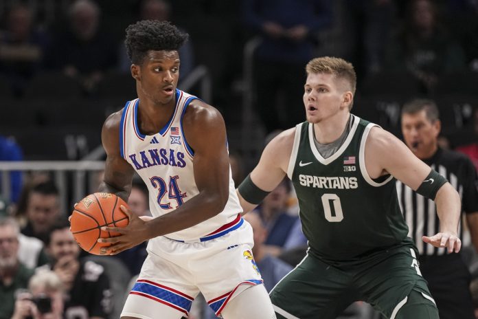 Kansas took the lead for good on KJ Adams’ free throws with 8:37 left in the game, which sparked a 6-0 run that propelled the Jayhawks ahead 58-52. The Spartans closed to within 63-59 before Harris scored five straight points, extending the Jayhawks’ advantage to nine with 4:25 remaining.