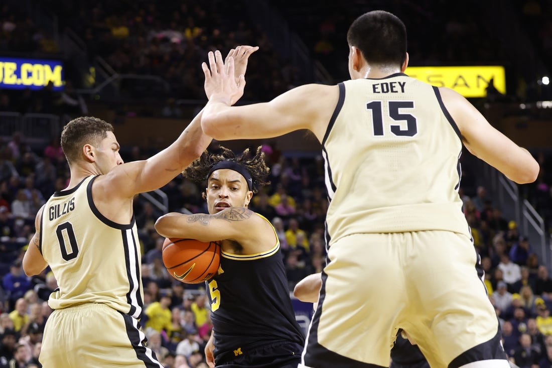 Edey scored 15 first-half points on 7-for-12 shooting and recorded blocks on back-to-back possessions late in the half to spark the Boilermakers to a 41-35 lead at the break. Purdue shot 51.7 percent while using a 15-0 run late in the half before the Wolverines responded with a 7-0 spurt.