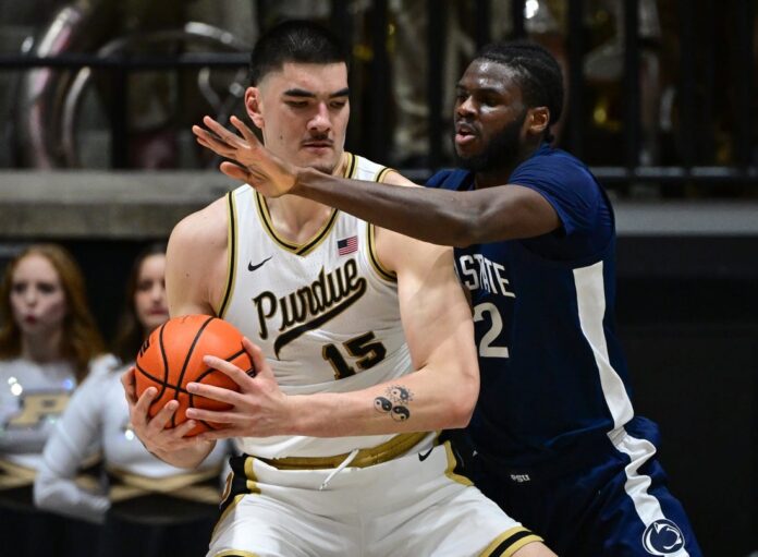 Center Zach Edey collected 30 points and 20 rebounds as top-ranked Purdue avoided back-to-back losses by beating visiting Penn State 95-78 on Saturday.