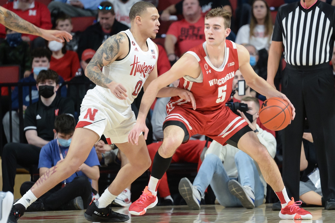 Ben Carlson’s jumper put Wisconsin up 55-37 with just over 12 minutes left as the Cornhuskers missed 12 consecutive field goal attempts.