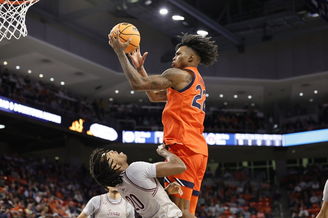 A 10-0 run by Auburn (6-0), sparked by K.D. Johnson’s three-point play and a 3-pointer and a dunk by Jaylen Williams, put the Tigers up 35-31 less than 10 minutes to play.
