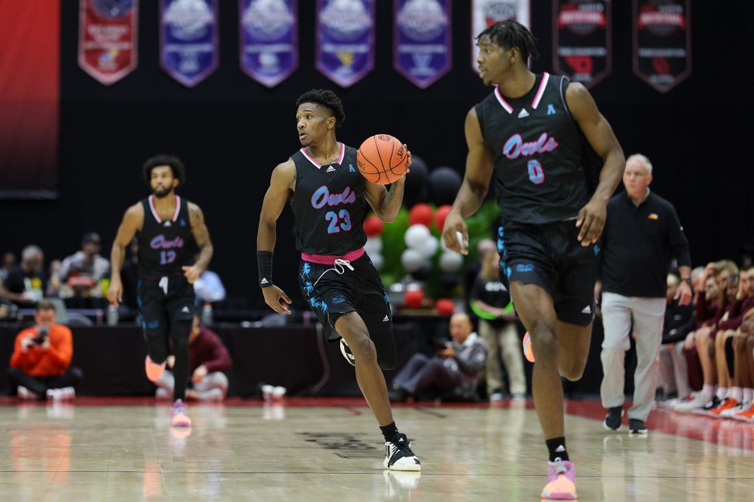A layup from Florida Atlantic’s Giancarlo Rosado with 15:02 remaining in the game opened the first 20-point lead at 55-35 and the Owls cruised to the victory from there.