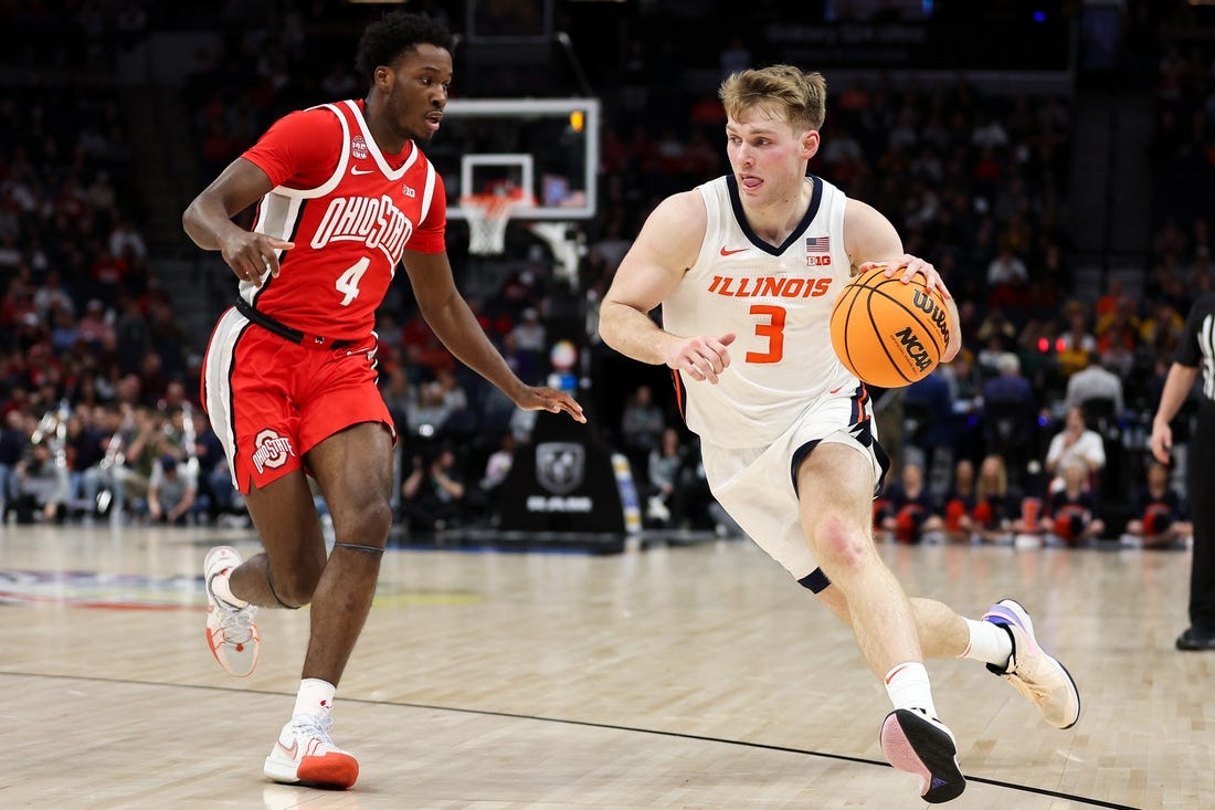 No. 13 Illinois scored the game’s last six points, all at the foul line, to pull out a 77-74 victory over Ohio State on Friday night in a Big Ten tournament quarterfinal at Minneapolis.