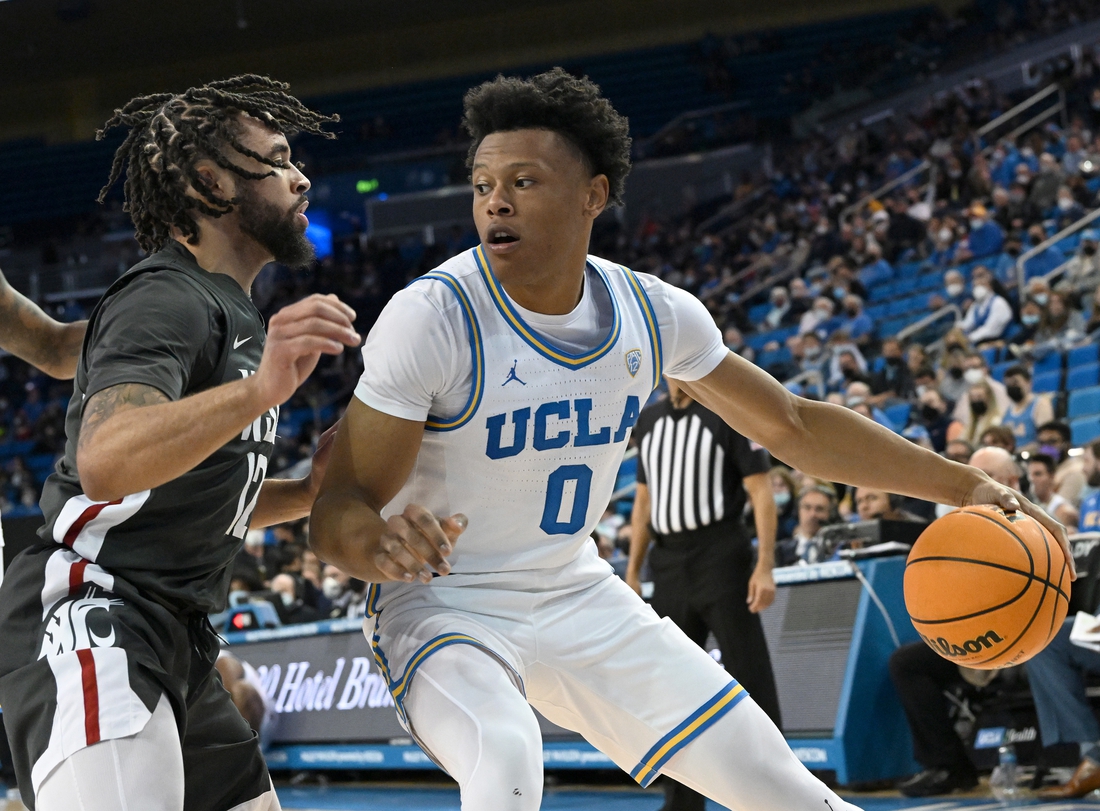 UCLA (18-5, 10-4 Pac-12) began its crammed late-season schedule on Thursday with a 76-56 rout of Washington State. Johnny Juzang scored 19 points to lead the Bruins, while Jaylen Clark recorded career-highs of 18 points and 11 rebounds.