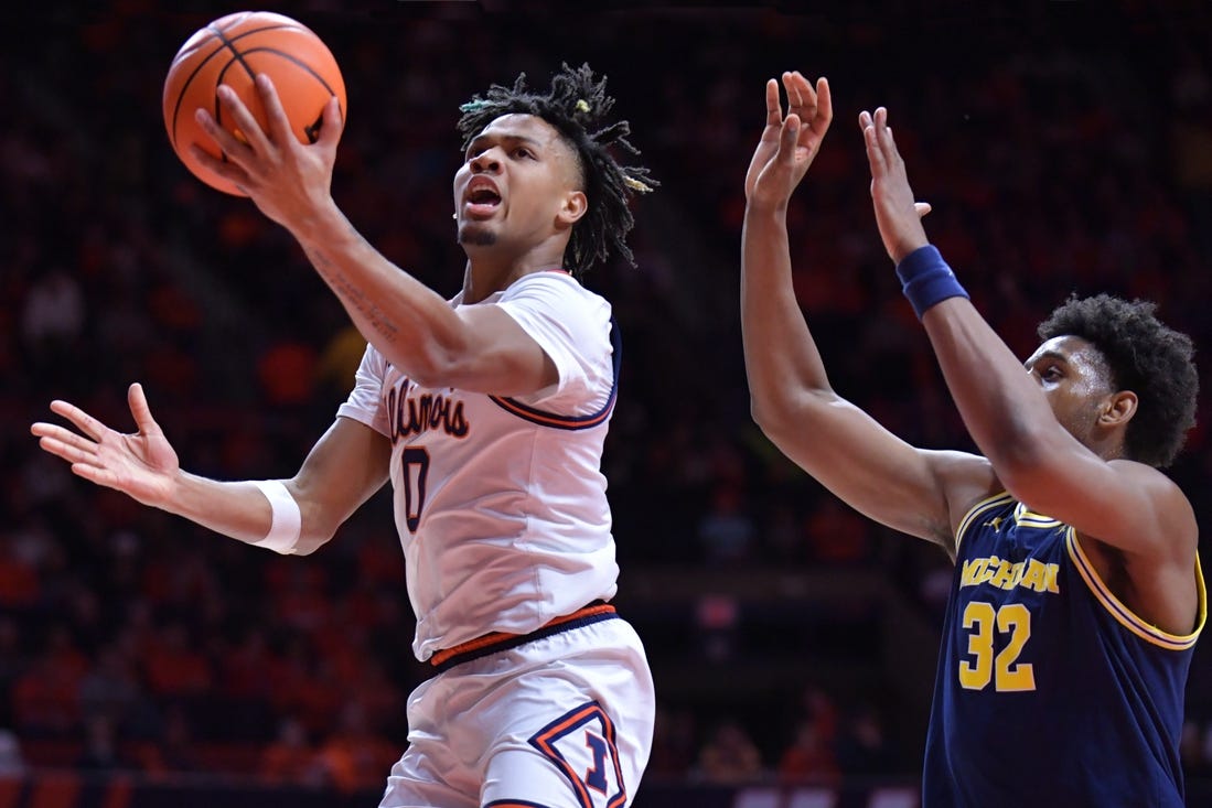 Shannon answered with a 3-pointer with 4:30 left in the half. After a layup by the Wolverines’ Nimari Burnett, the Fighting Illini erupted with a 16-2 run to grab a 47-29 halftime lead.