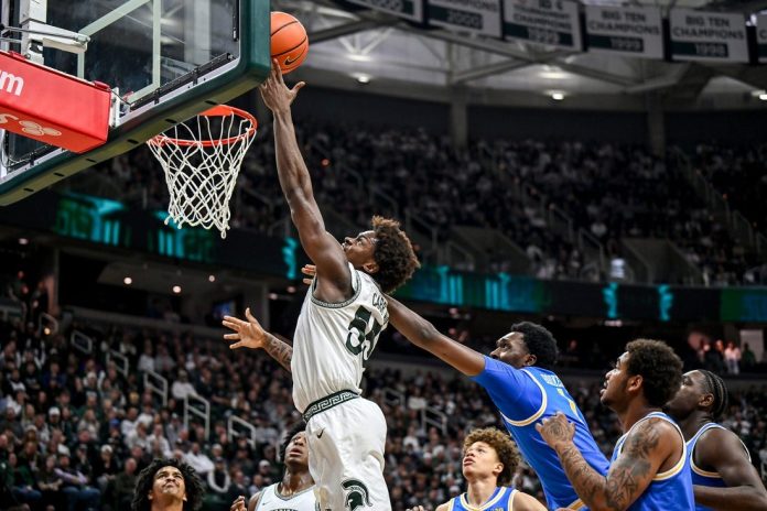 Jeremy Fears Jr. recorded 16 points and 10 assists as Coen Carr also scored 16 points to help No. 15 Michigan State roll to an 82-59 victory over UCLA on Tuesday night in Big Ten play in East Lansing, Mich.