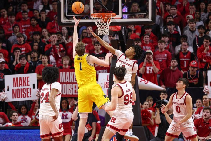 After trailing 74-62 with just over 11 minutes to play, the Wolverines went on a 10-0 run to cut Rutgers’ advantage to two with 5:54 remaining. Wolf started that run with a layup and also finished it off with a layup.