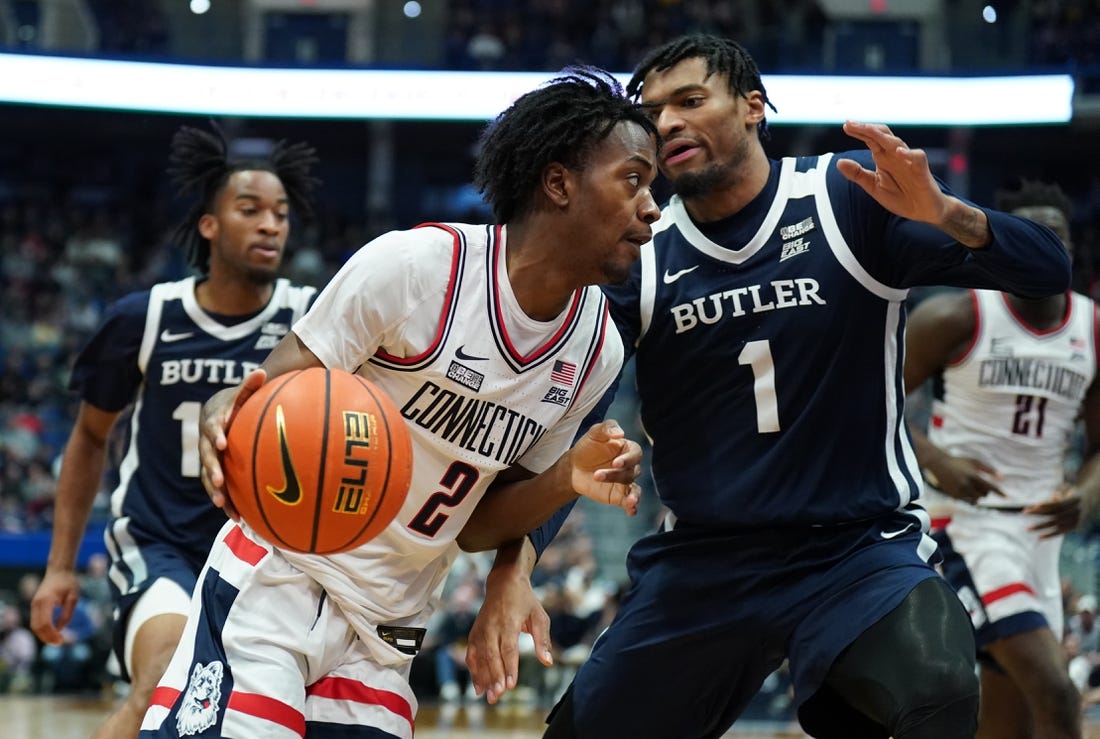 Jordan Hawkins tallied 20 points to lead four scorers in double figures as No. 15 UConn dealt Butler an 86-56 shellacking in Hartford, Conn., on Sunday afternoon to snap a three-game losing skid.