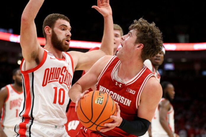 The Badgers held a 35-33 halftime thanks to a 6-0 run over the final 1:32. They took the lead on Connor Essegian’s only points of the half, a trey with 46 seconds left.