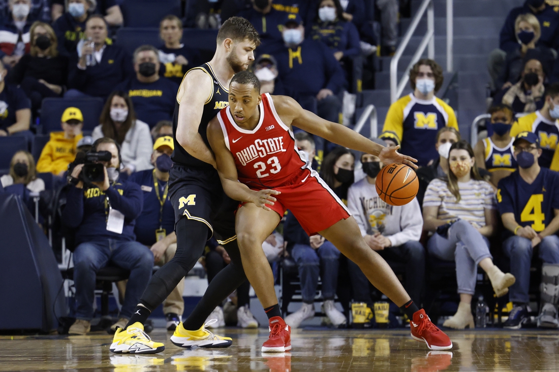 Liddell scored the last of his 11 points for a 29-28 lead with 1:42 left but he wasn’t finished contributing to the Buckeyes’ cause. At the other end of the court, he swatted a drive by DeVante’ Jones that resulted in a break that was completed with a baseline layup by Russell to make it 31-28.