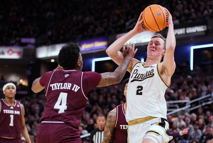 The Aggies led for most of the half, although Purdue managed a 32-28 edge on Smith’s 3-pointer with 5:37 remaining. However, Texas A&M got two free throws from Phelps and another one from Coleman in the last 1:10 to take a 38-35 edge to intermission.