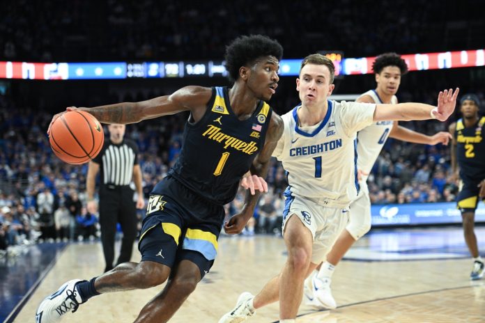 Marquette (18-6, 9-4 Big East) suffered its third consecutive loss, falling 77-67 at Creighton on Saturday despite a 27-point effort from Kam Jones. Combined with a 70-64 loss at conference-leading St. John’s earlier in the week, the Golden Eagles dropped seven spots in this week’s AP Top 25 poll.