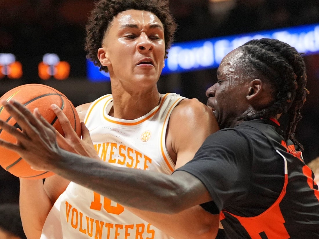 Nate Ament, a highly touted freshman forward, scored 18 points and grabbed nine rebounds in his Tennessee debut. The 6-foot-10 Ament is among the players being considered for the Naismith and Oscar Robertson player of the year awards.