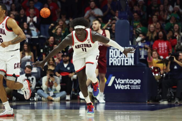 Ballo, a 7-foot center, scored 13 points and had 10 rebounds to help Arizona (7-0) dominate the paint, holding the Raiders (4-4) without an offensive rebound until the final shot of the game as time expired.