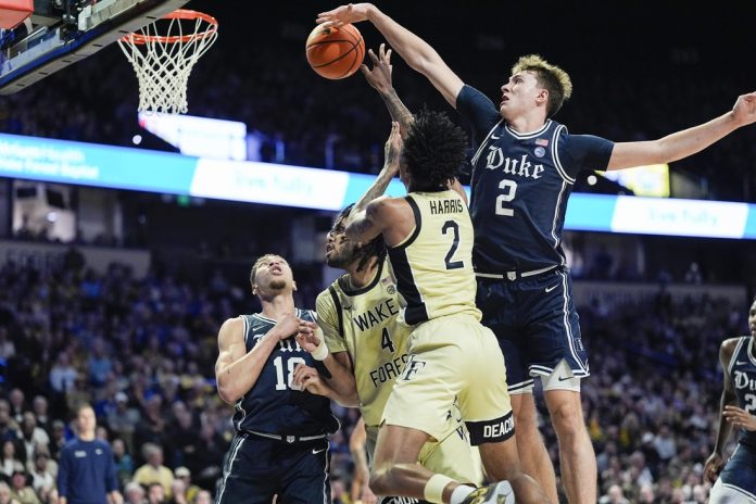 Knueppel racked up 12 first-half points as the Blue Devils led 35-22 at the break after Sallis’ dunk at the buzzer. The Demon Deacons shot 29.6 percent from the field and 6-for-12 on free throws in the half, missing all nine of their 3-point attempts.