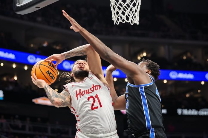 If BYU had hoped for a quick start against the suffocating Houston defense, they didn’t get it. BYU missed its first nine shots before Baker hit a floater in the lane with 13:16 left in the first half. Houston already led 15-0.