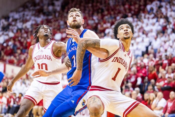 Indiana jumped out to a quick 8-2 run, forcing Kansas coach Bill Self to burn a timeout with a little more than 2 minutes gone in the game. Kansas got within 12-11 before the Hoosiers scored six straight points. Indiana led by as many as 12 before heading into the locker room up 40-32.