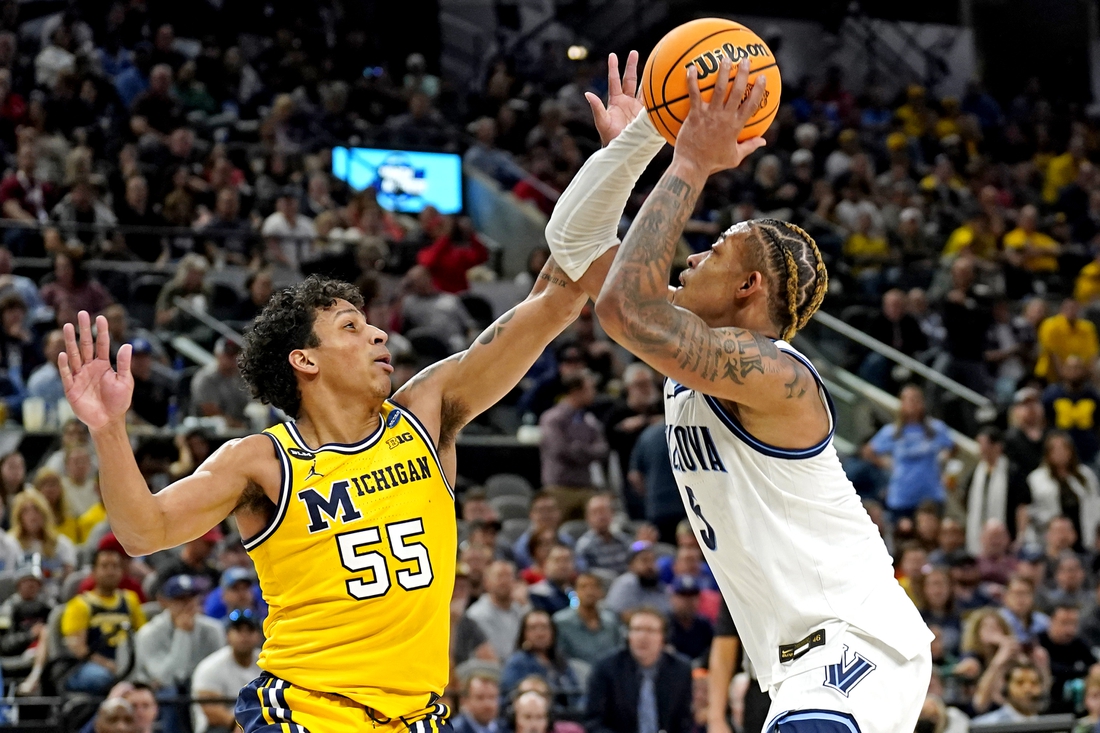The Wolverines were within three points after a free throw by Moussa Diabate with 17:15 to play in the game, but Villanova stretched its advantage to 54-45 on a layup by Eric Dixon with 5:17 left.
