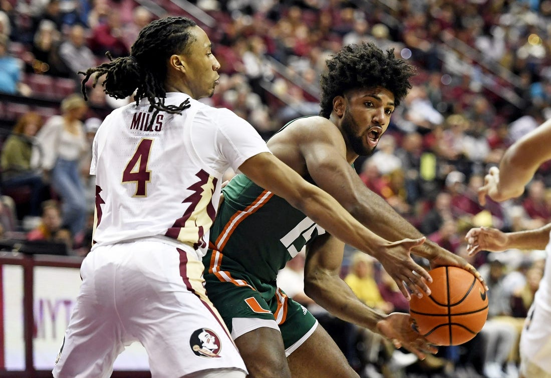 Norchad Omier helped Miami dominate on the glass and finished with 12 points and 11 rebounds. The Hurricanes outrebounded the Seminoles 40-23 and didn’t allow Florida State to pull any closer than 20 in the second half despite committing 17 turnovers that led to 19 points.