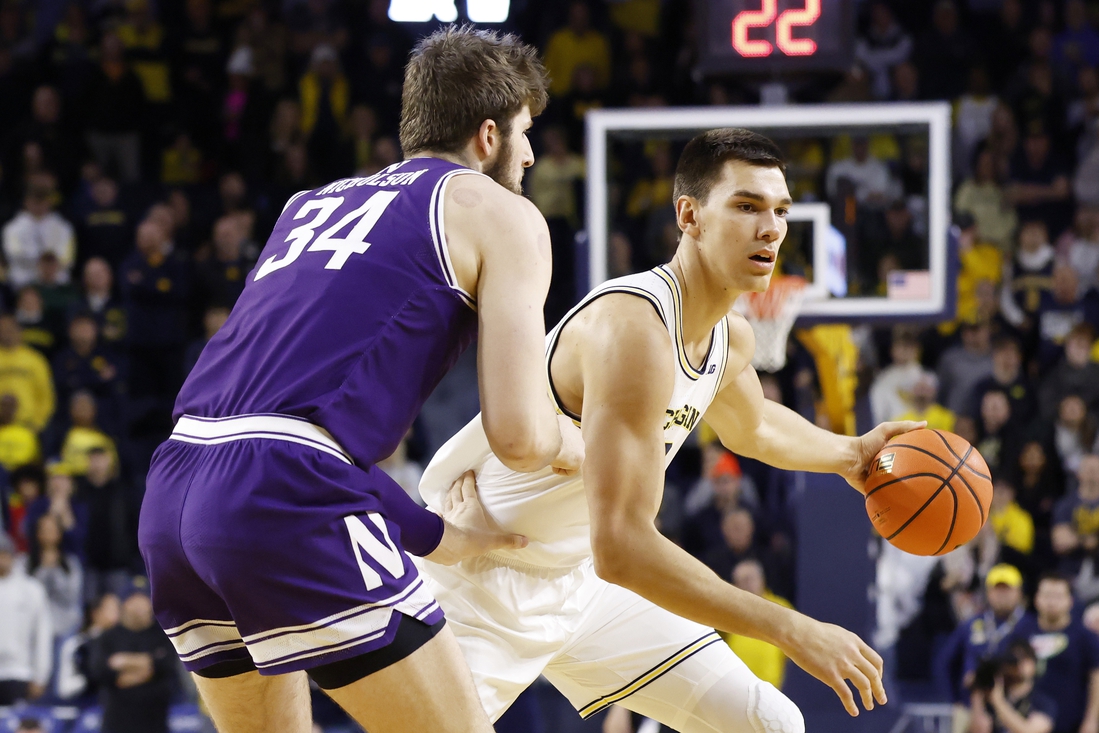 Goldin quickly turned things around for the hosts, knocking down consecutive 3-pointers to begin a 9-0 Michigan spurt. The Wolverines’ lead didn’t last long, as Northwestern soon reeled off seven consecutive points, a run capped by a Berry 3-pointer, for a 27-25 lead.