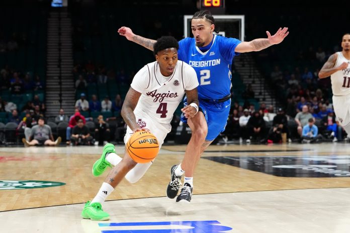 Texas A&M lost to Oregon in the opening round of the tournament before beating then-No. 21 Creighton and Rutgers, each by four points.
