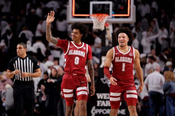 Coach Nate Oats’ group led the intense matchup by as many as 15 before stopping a late run by the Aggies for a 94-88 win to stay undefeated in the SEC and capture its eighth straight victory overall.